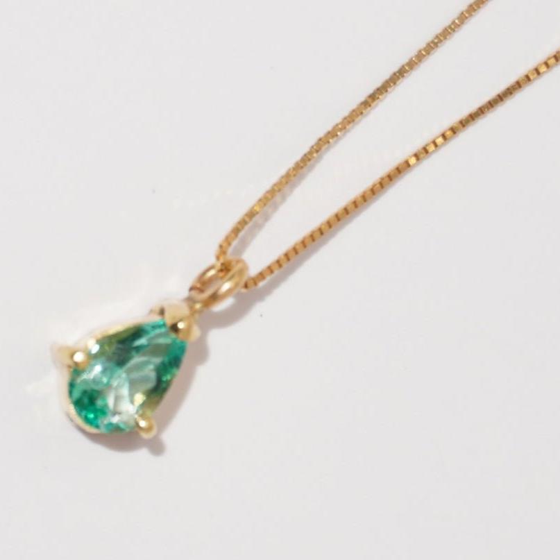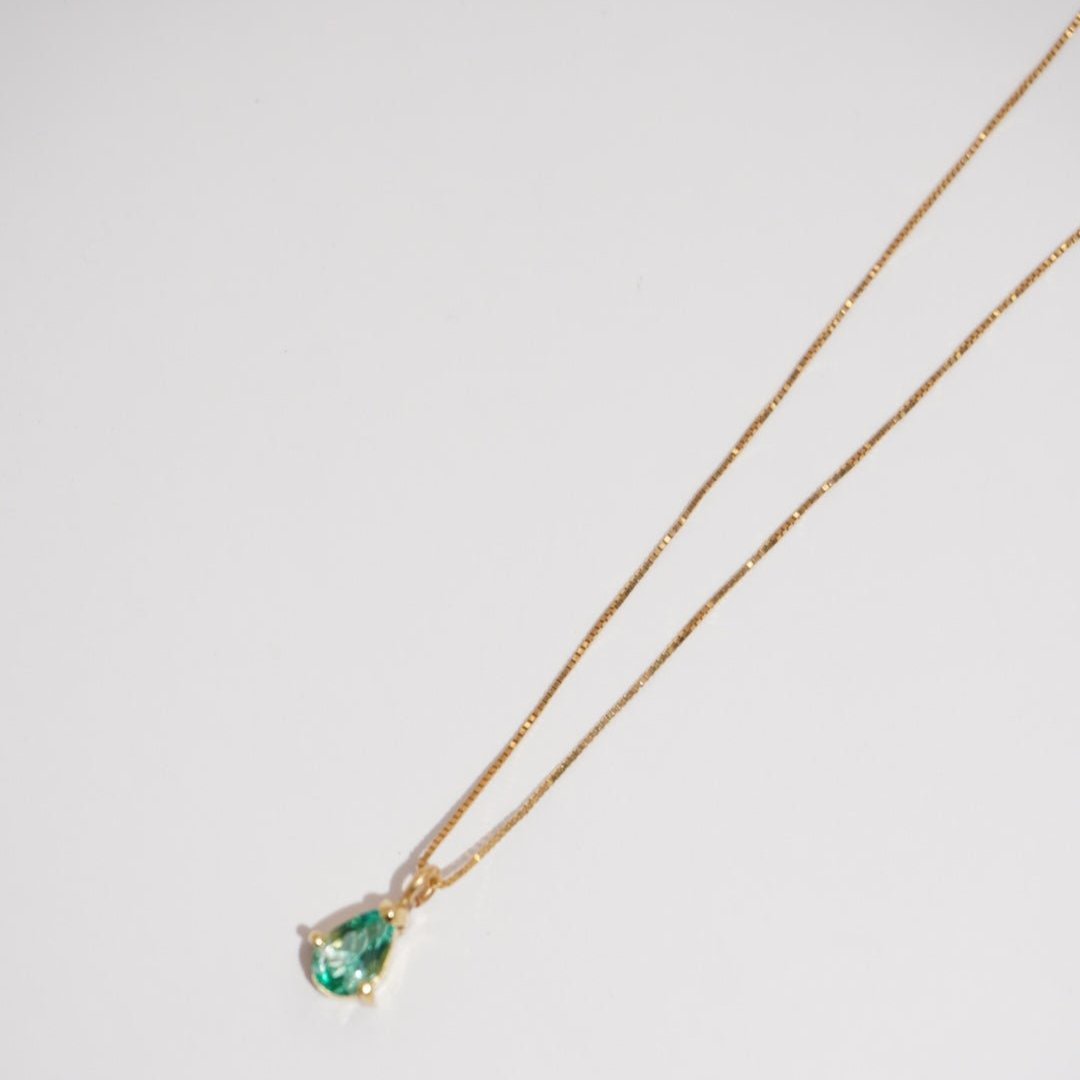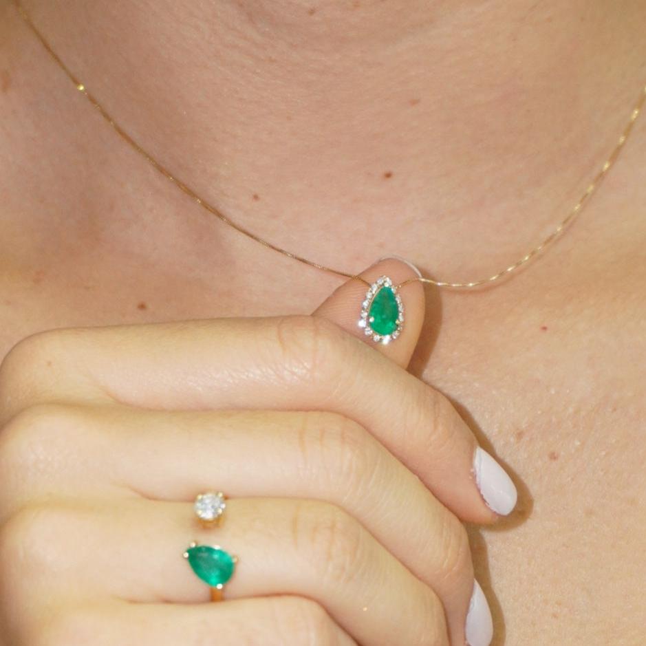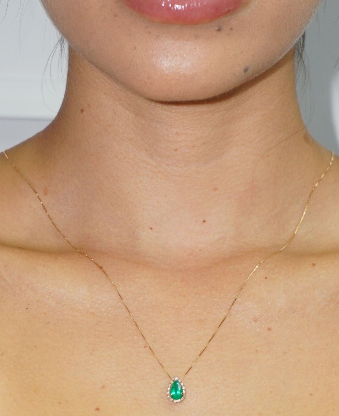 Esta cadena en oro de 18k en forma de gota de esmeralda captura la esencia de la elegancia natural y la sofisticación atemporal.