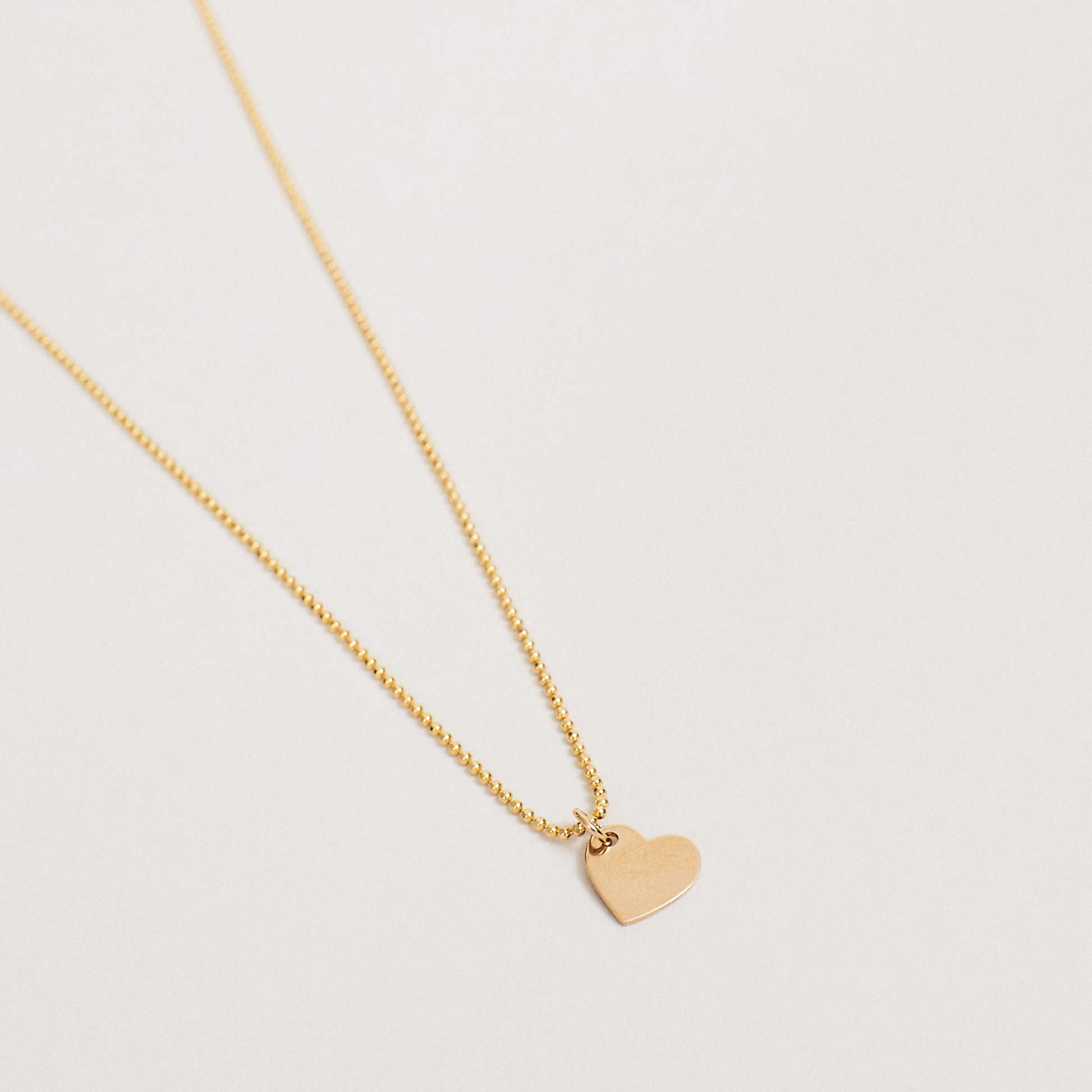 Cadena tejido militar y placa corazón para un estilo más juvenil. 1mm oro 18k italiano de 45cm de largo y placa corazón oro 18K con 6mm de grande.