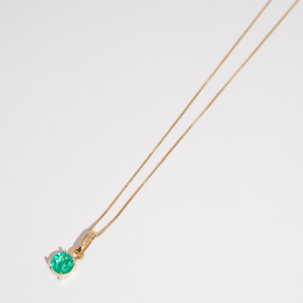 La cadena, delicada y brillante, sostiene con gracia un colgante en forma de dije, en el que la esmeralda, de un verde profundo y radiante, se convierte en el centro de todas las miradas. La piedra preciosa, cuidadosamente seleccionada, refleja la luz con un destello único, aportando un toque de lujo y distinción a cualquier conjunto. Ideal para ocasiones especiales o como un detalle refinado en el día a día.
