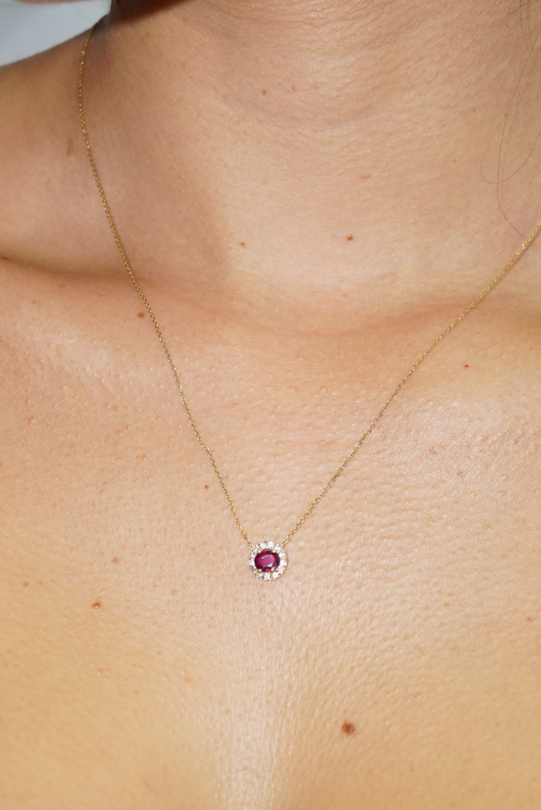 Esta joya fusiona la suavidad del oro con la intensidad del rubí, creando una pieza que destaca por su elegancia y simbolismo. Perfecta para cualquier ocasión especial, esta cadena de oro no solo es un accesorio, sino un amuleto que resalta tu estilo.