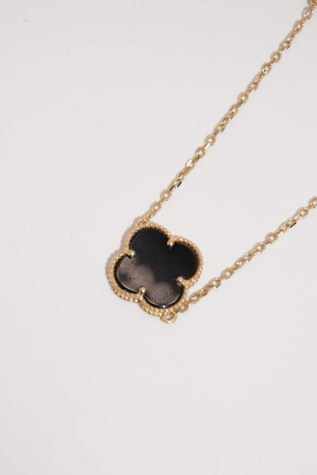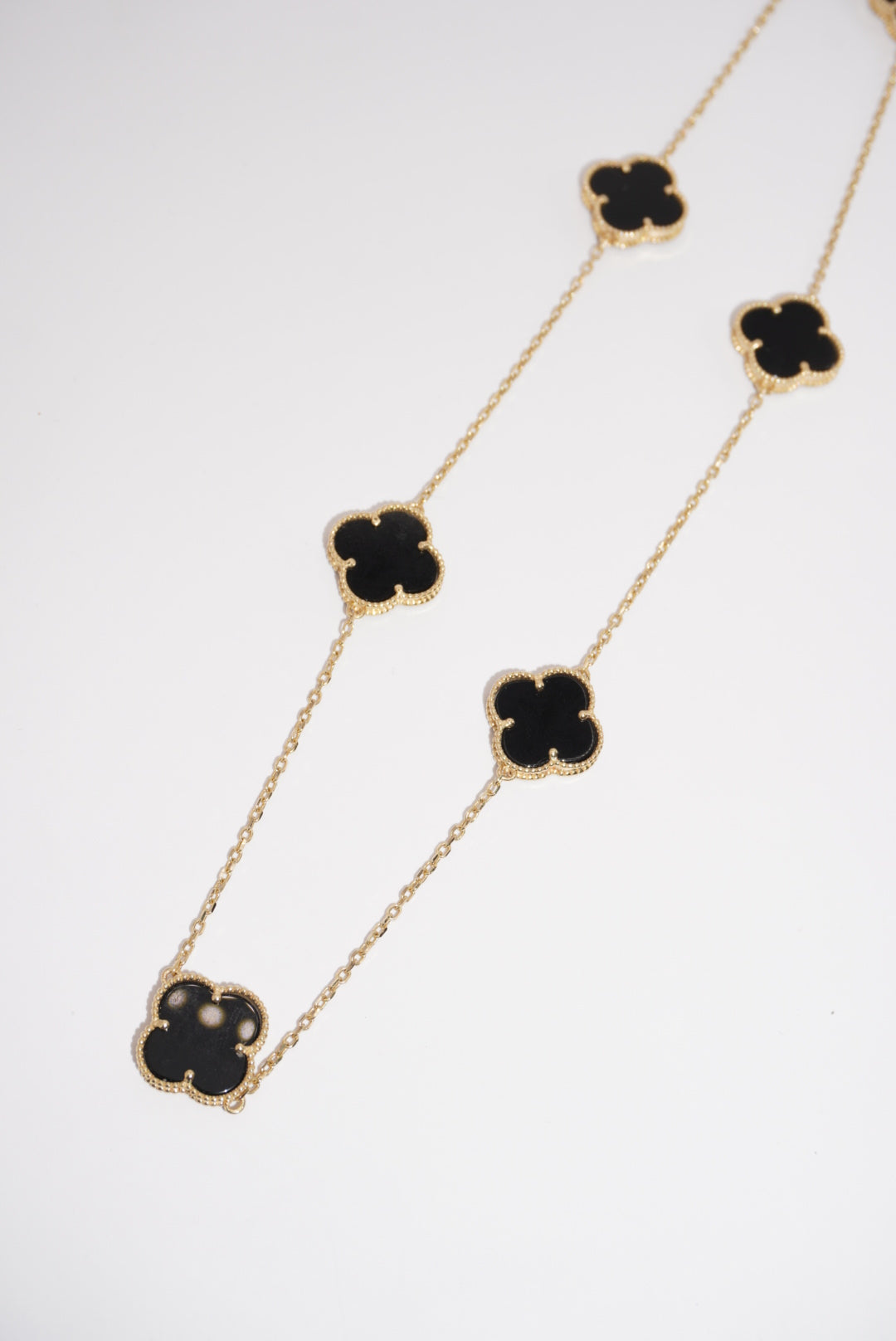 Esta delicada joya de Van Cleef, con pequeñas piedras negras, es un ejemplo sublime de la elegancia discreta y la sofisticación minimalista.