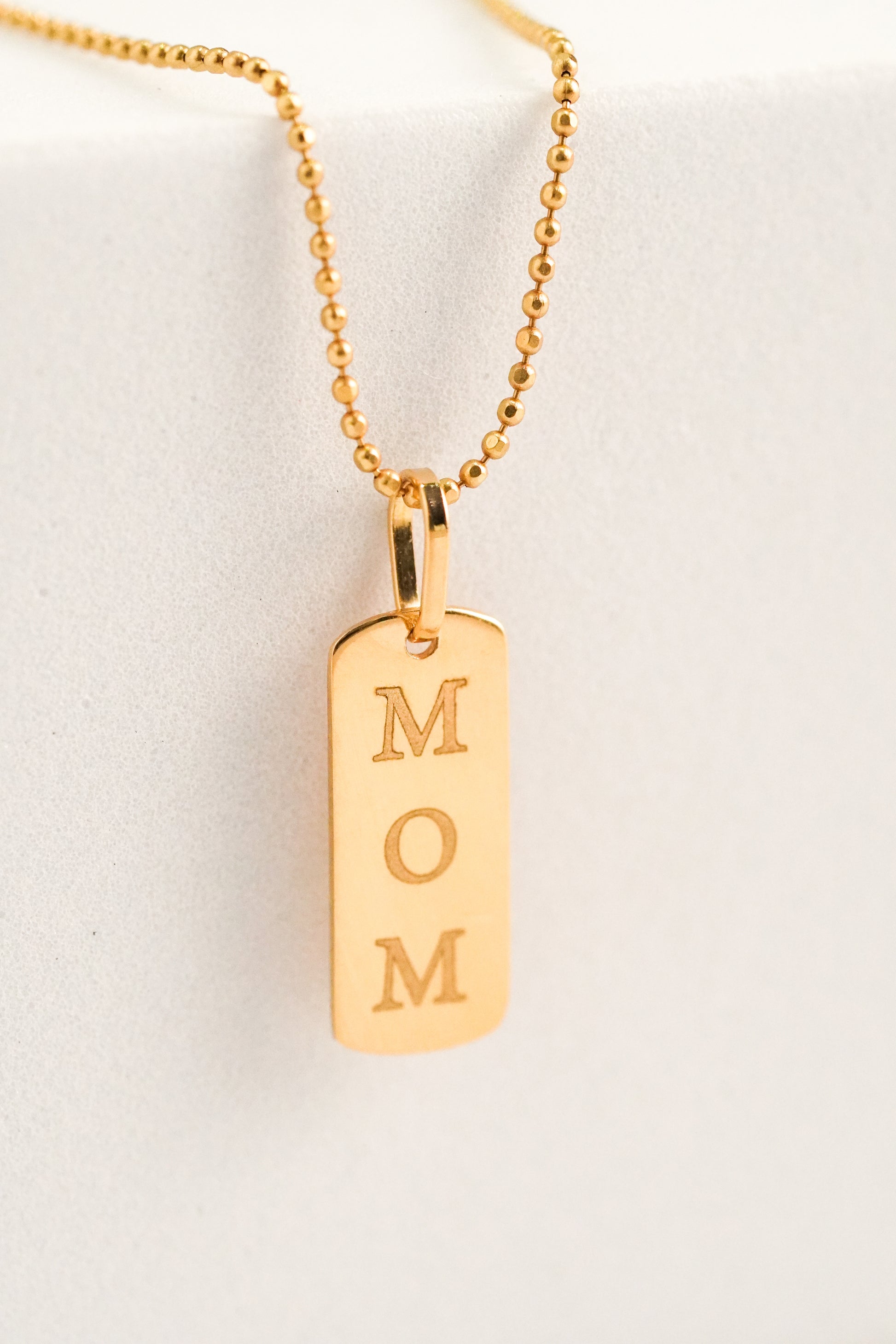Una placa en oro de 18K con la palabra que lo significa todo: MOM.MAMÁ